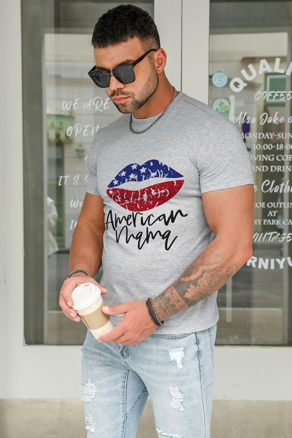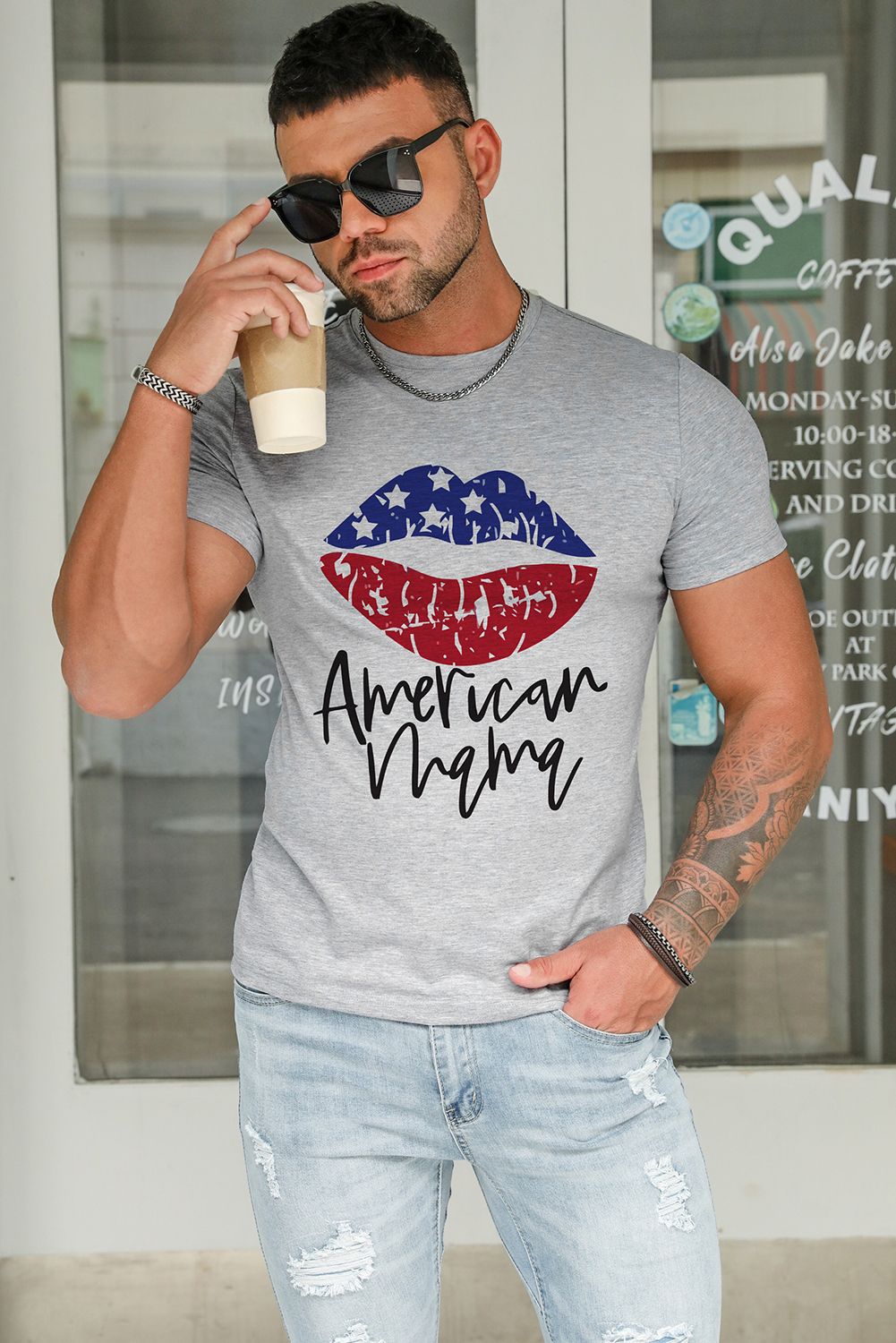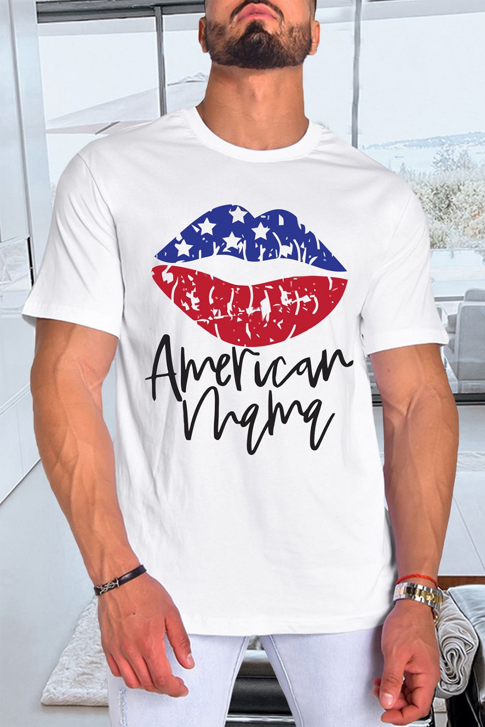 Gray America Mama Flag Lip Print Men's Graphic T-shirt
