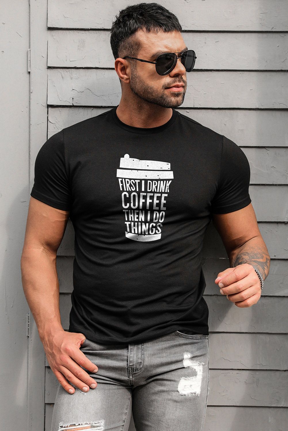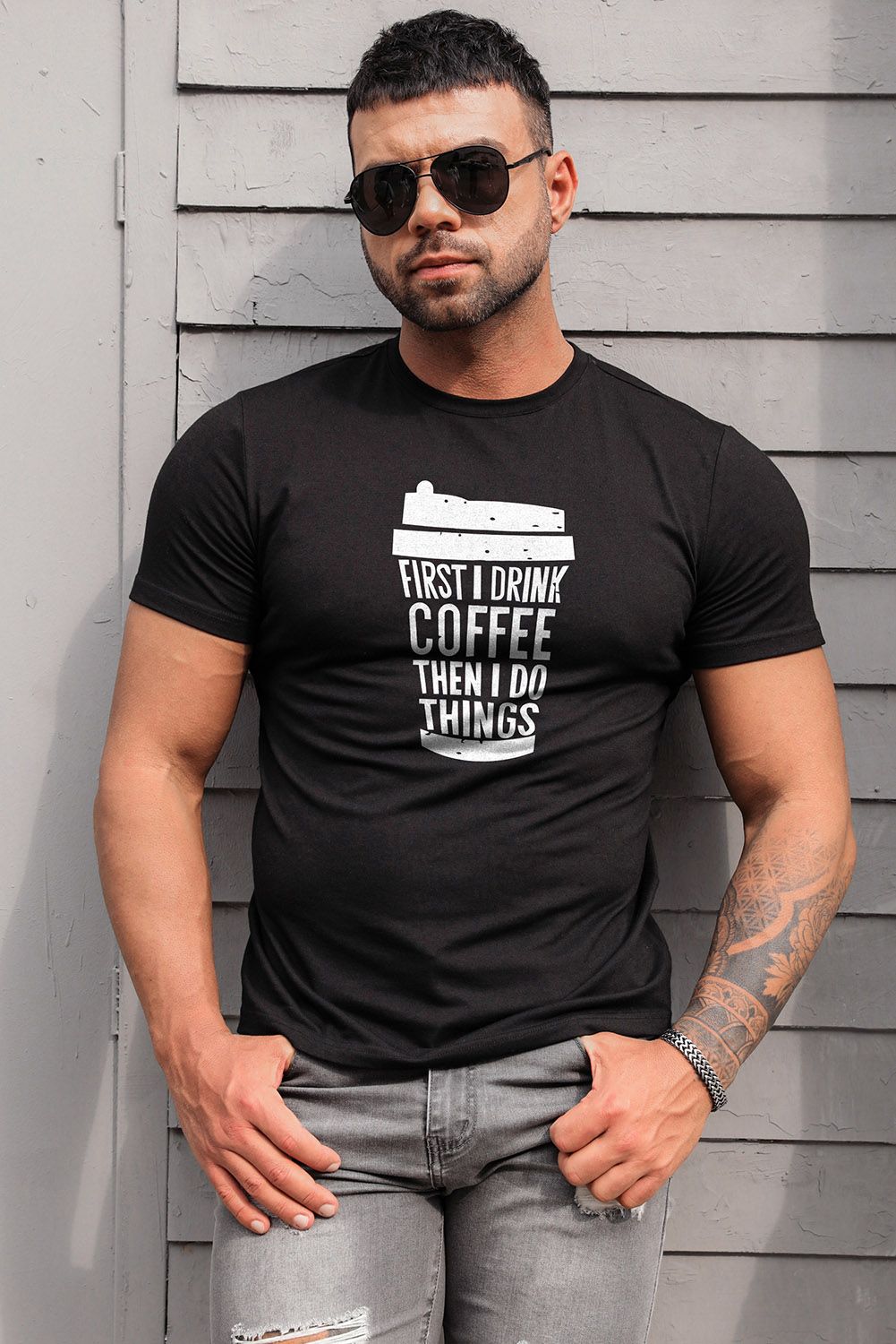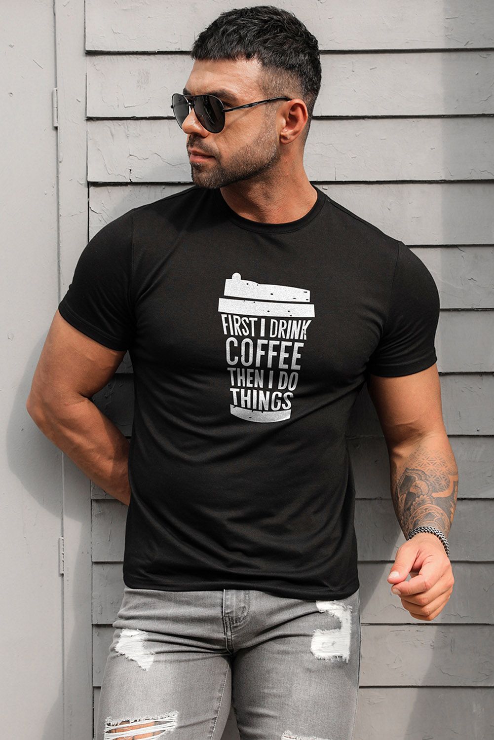 Men's Letter Coffee Cup Print Slim-fitCrewneck T Shirt