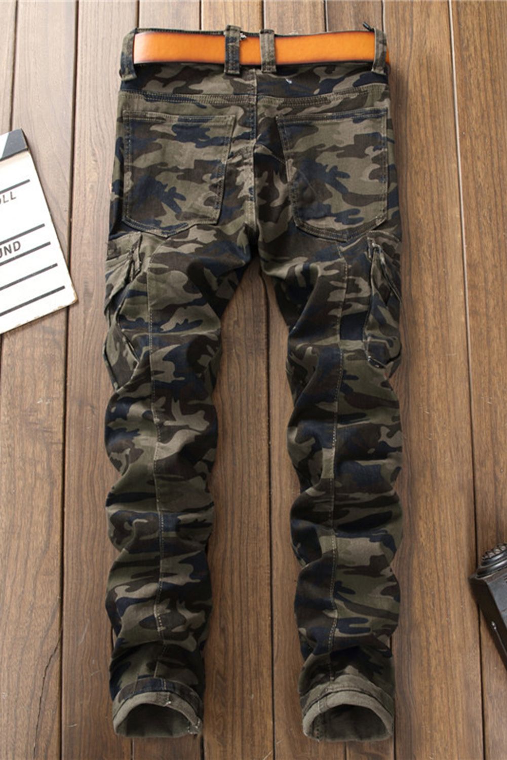 Camo Print Multi-Pockets Buttoned Men's Jeans