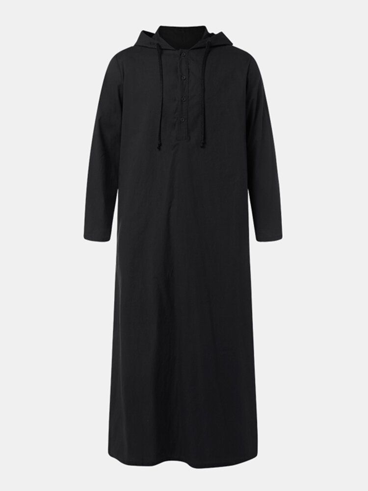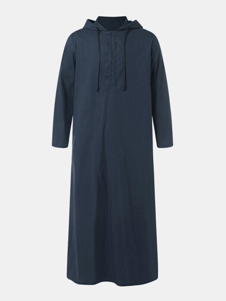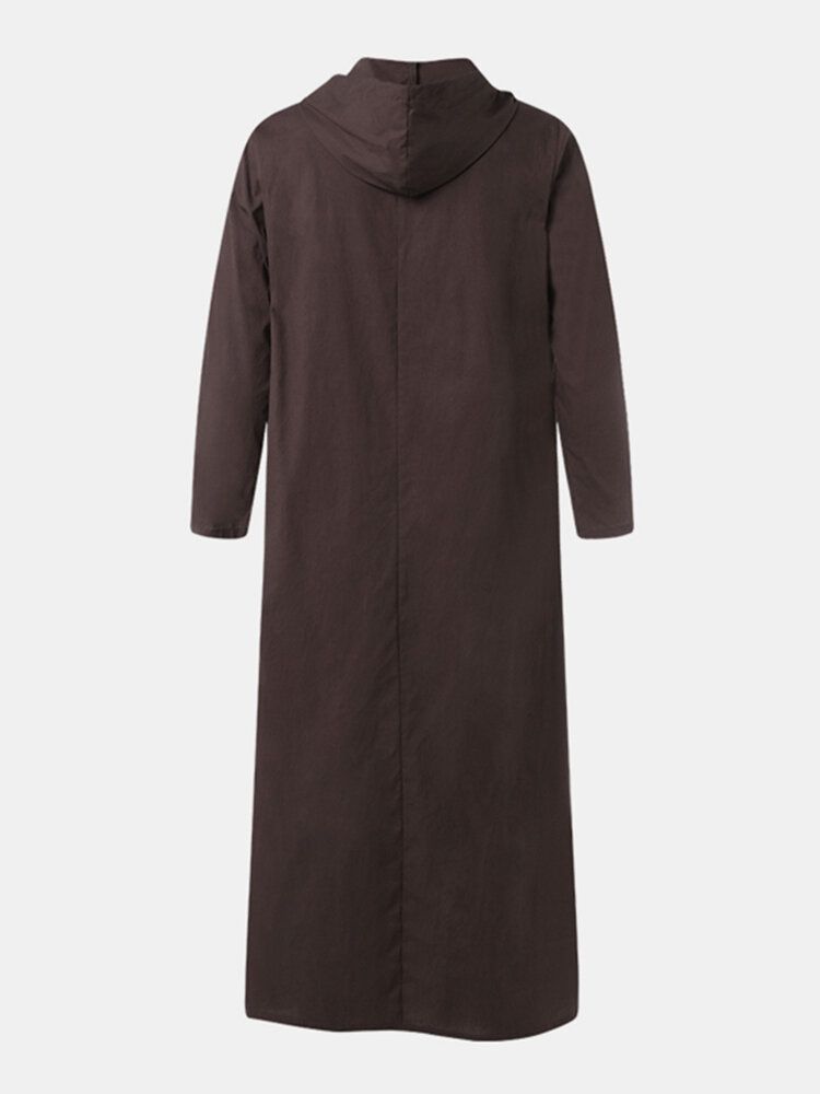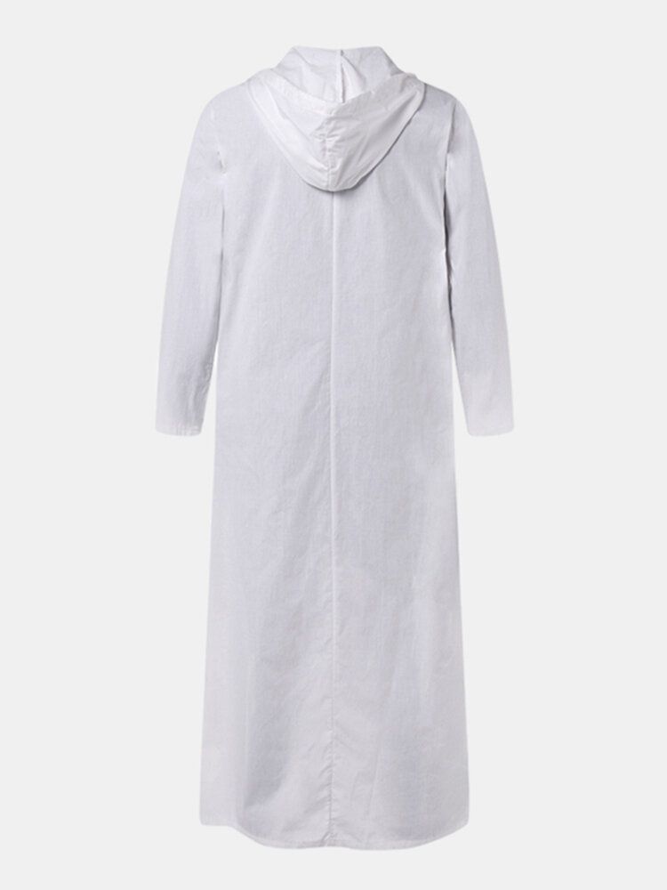 Men Cotton Middle Robe Solid Long Sleeve Hooded T-Shirt