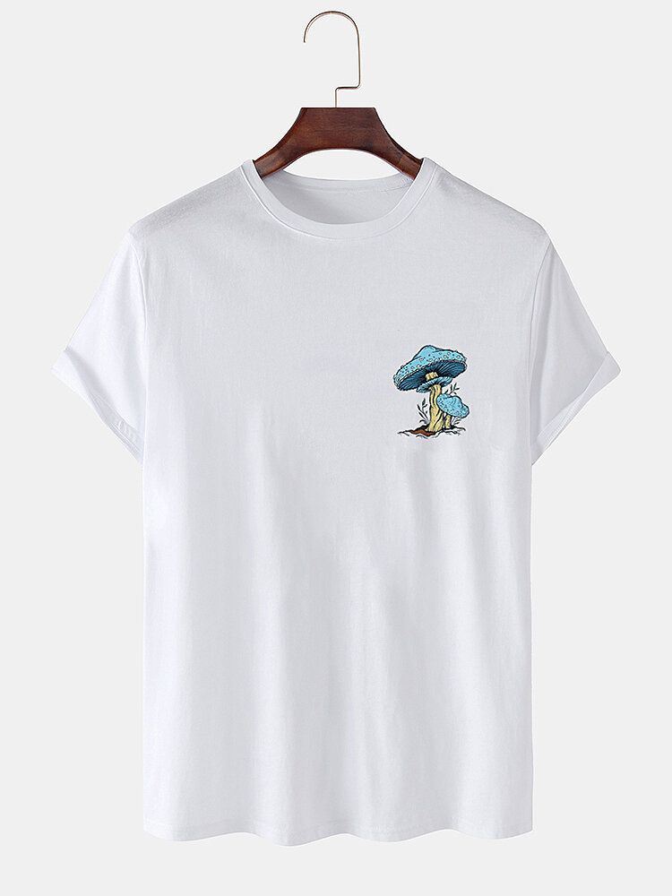Mens 100% Cotton Mushroom Pattern Plain Short Sleeve T-Shirt
