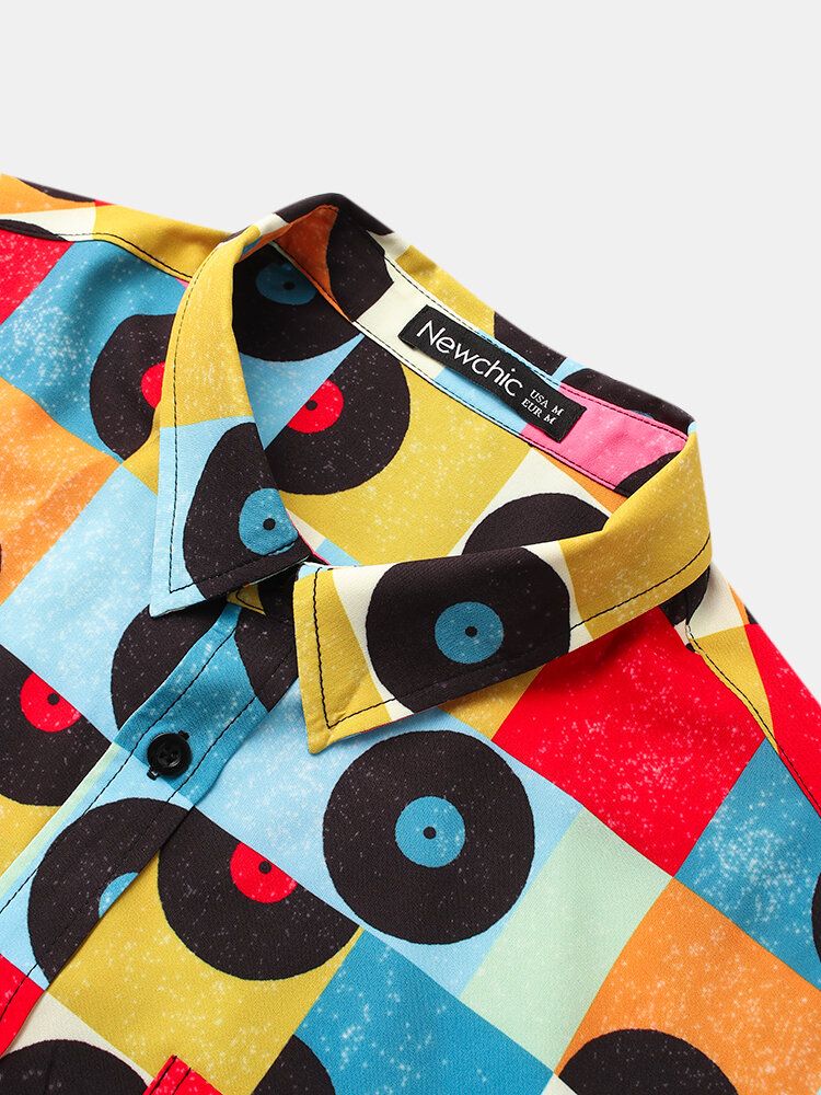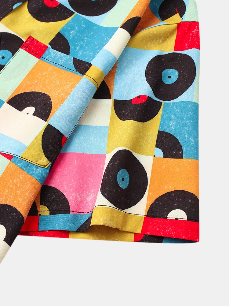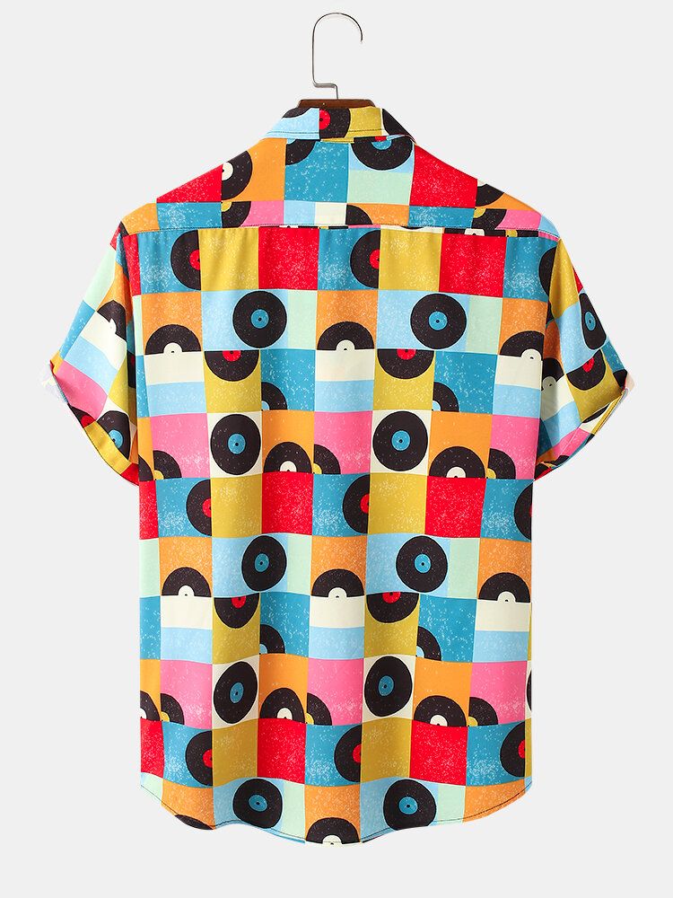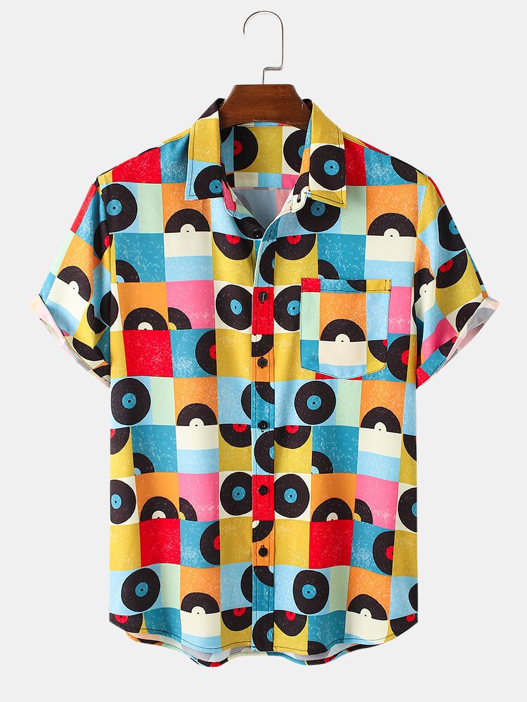 Mens Colorful Grid Geometric Pattern Short Sleeve Shirt With Pocket