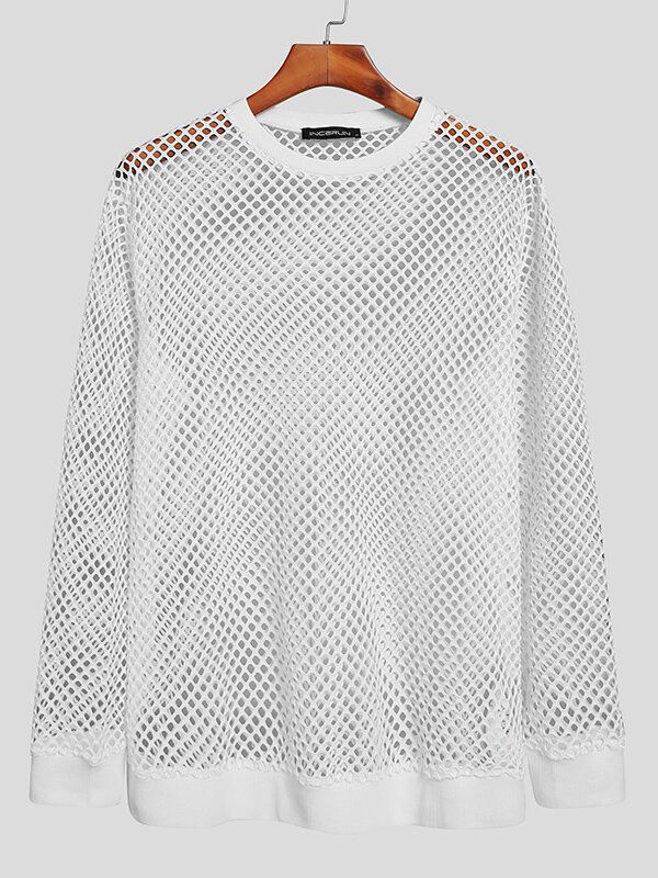 Mens Hollow Out Knitted Round Neck T-Shirt