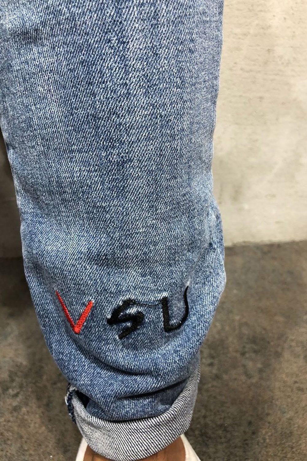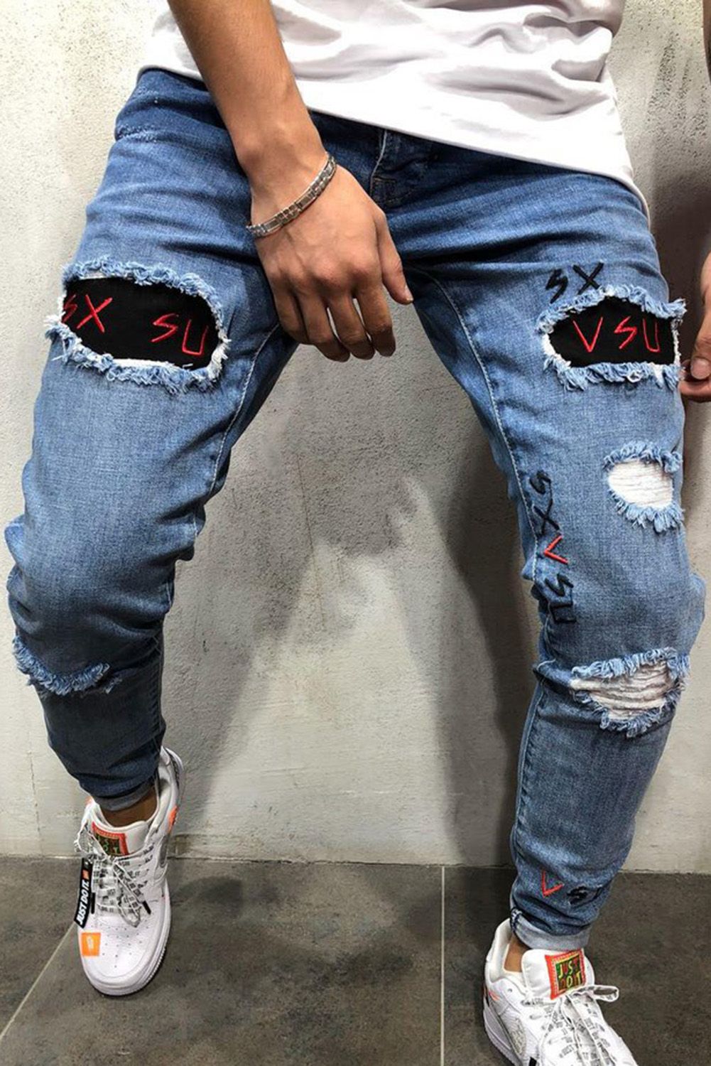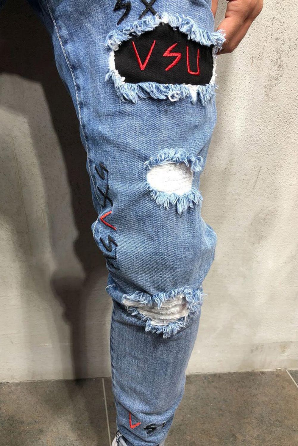 Men's Embroidered Ripped Jeans