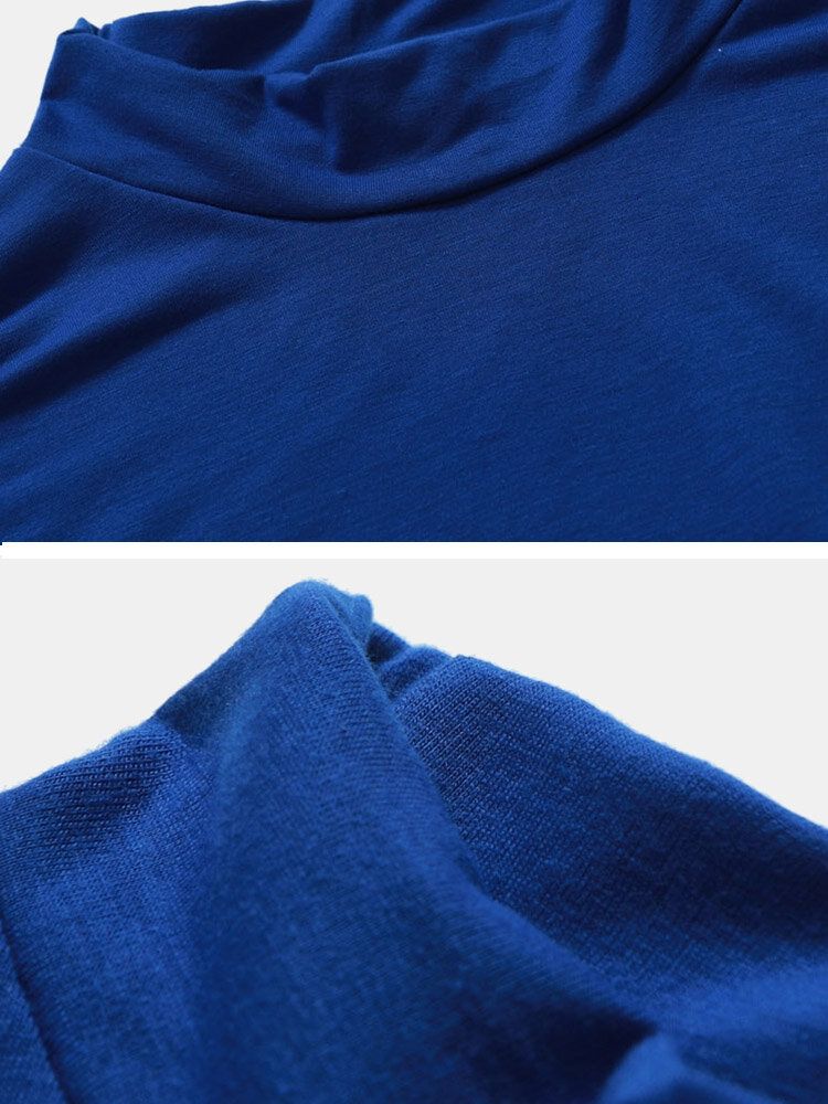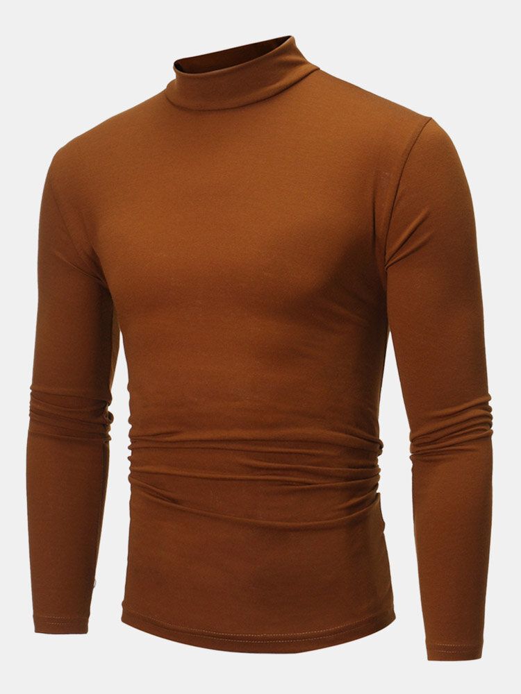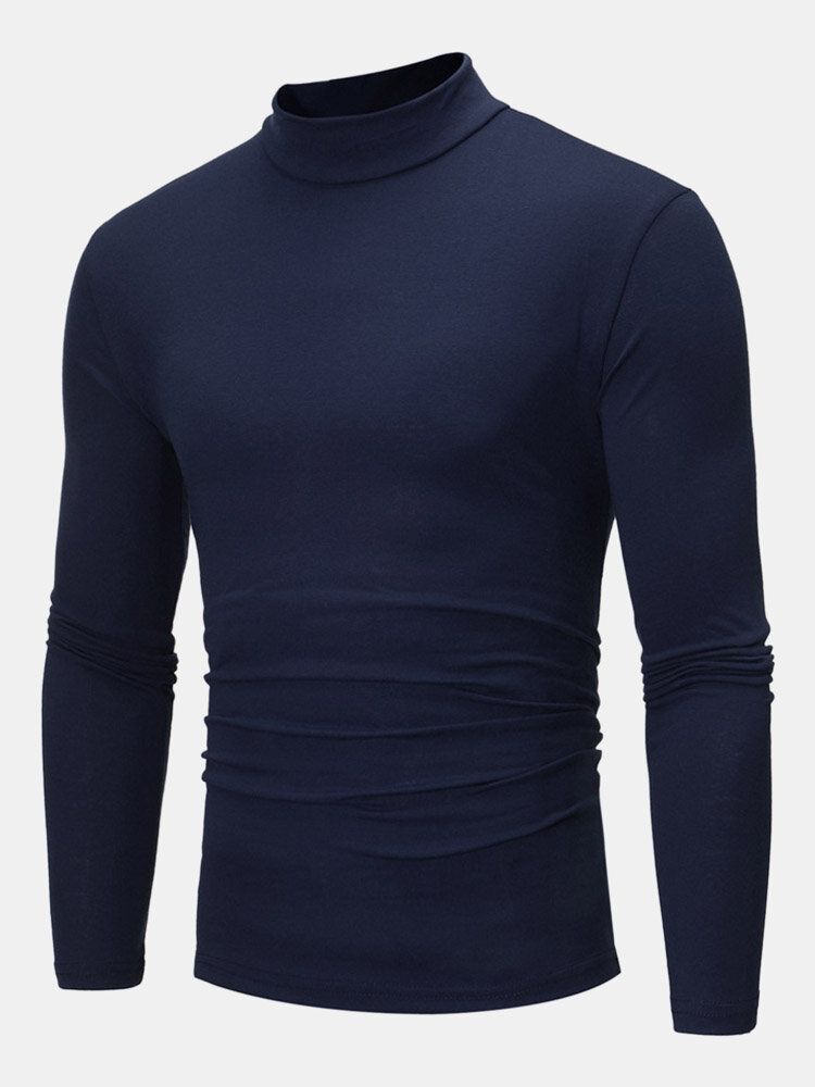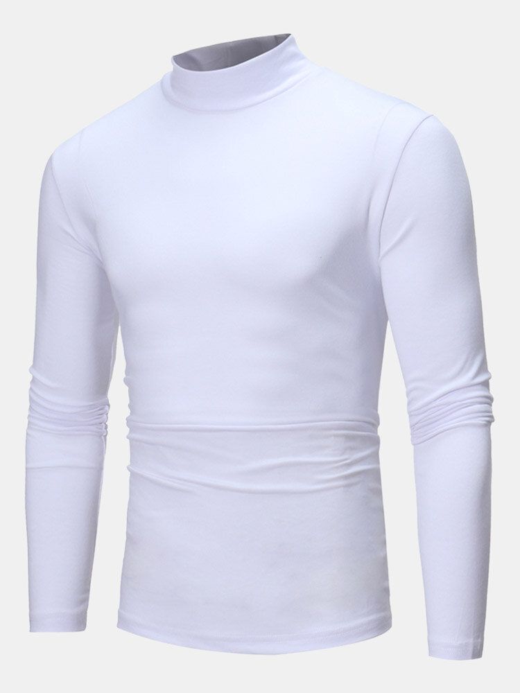 Mens Plain Pure Color Half Collar Cotton Basics Long Sleeve Bottoming T-Shirts