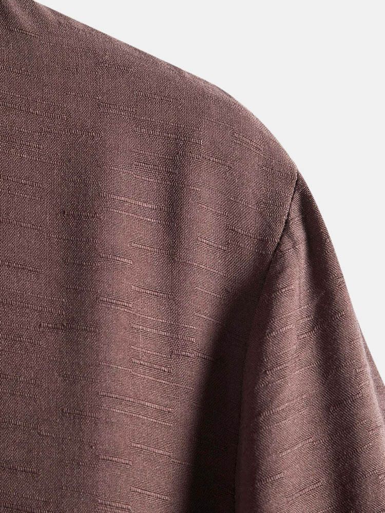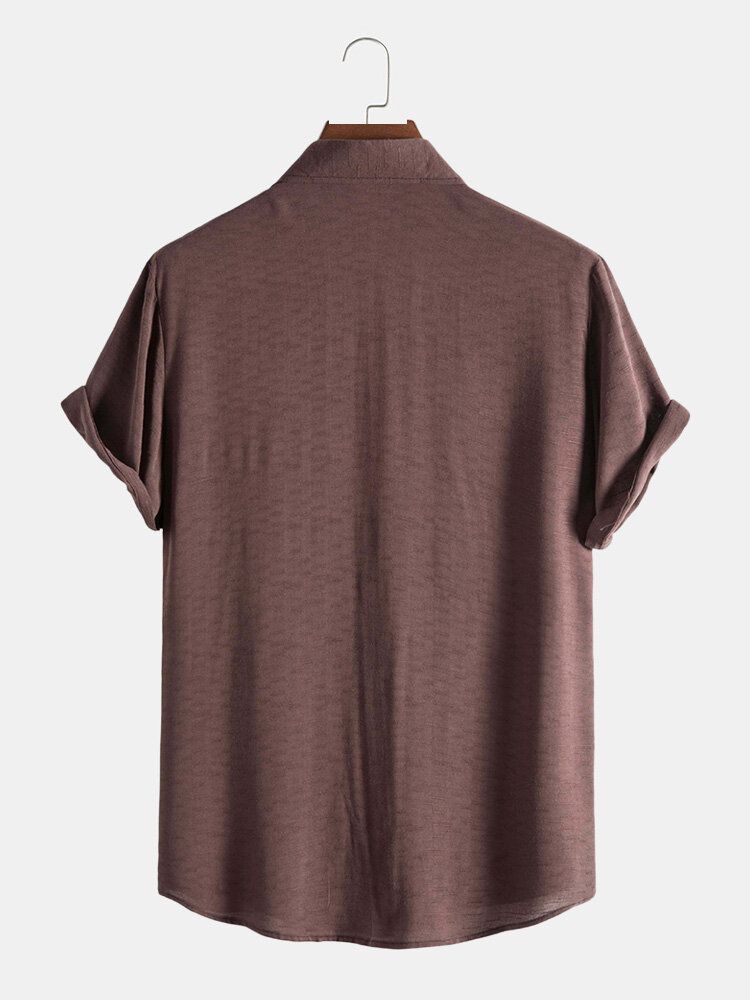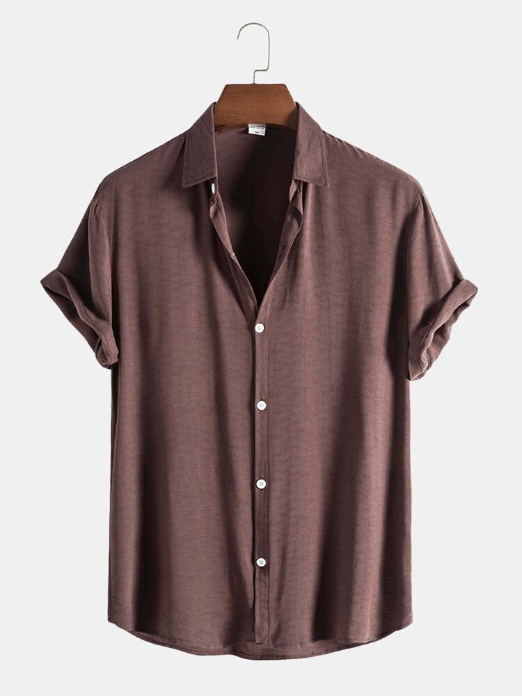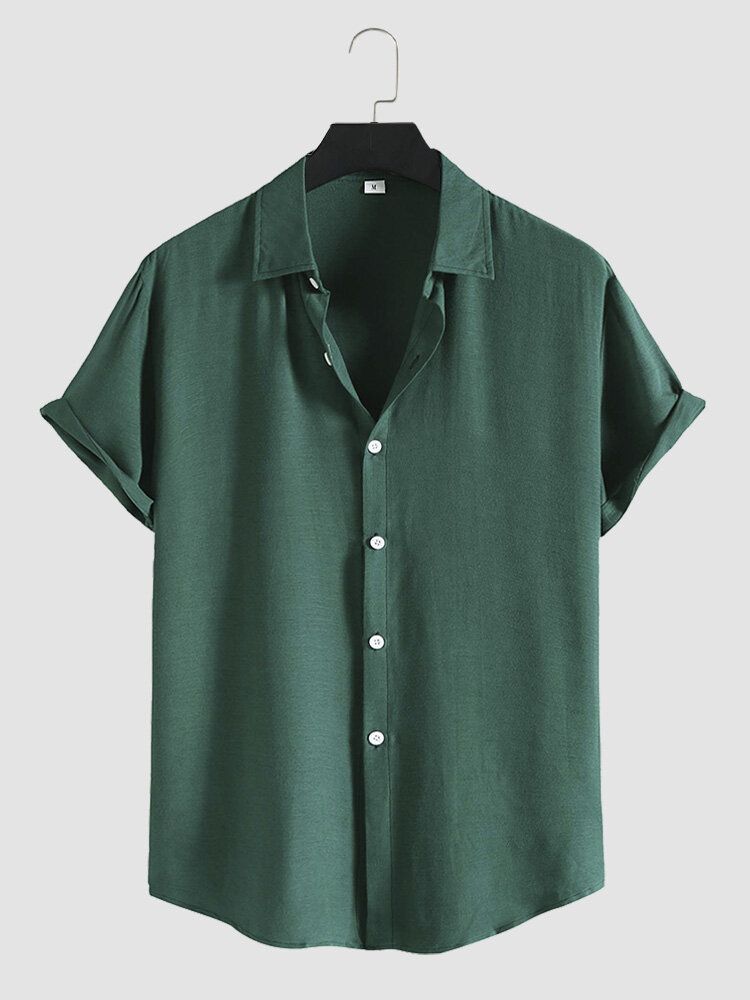 Mens Pure Color Lapel Button Up Cotton Basics Short Sleeve Shirts