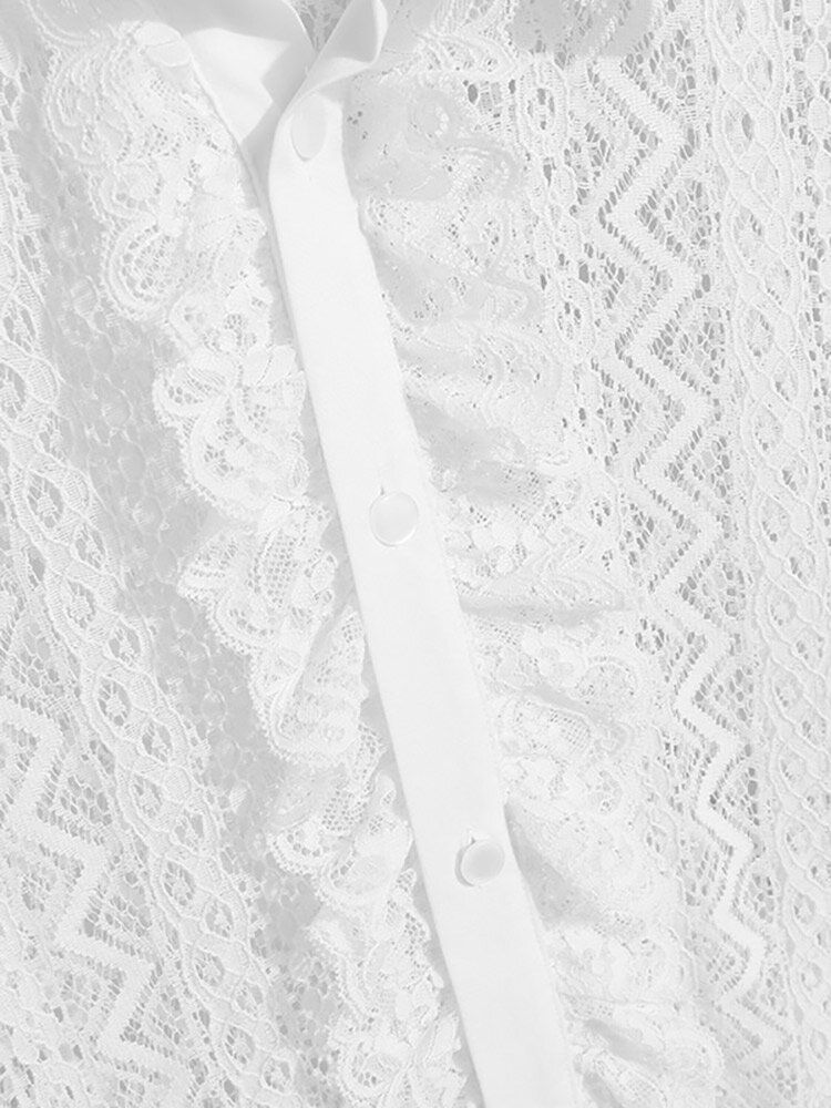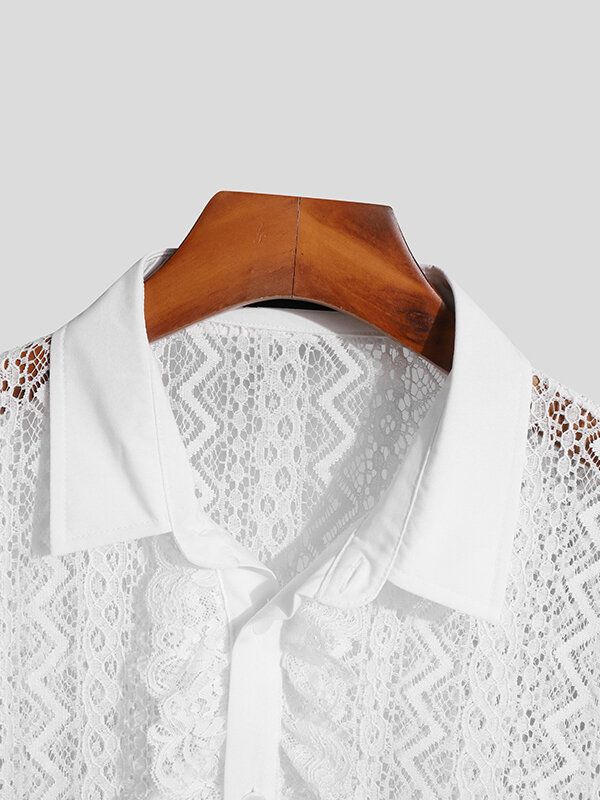 Mens See-Through Lace Crochet Ruffle Front Shirt