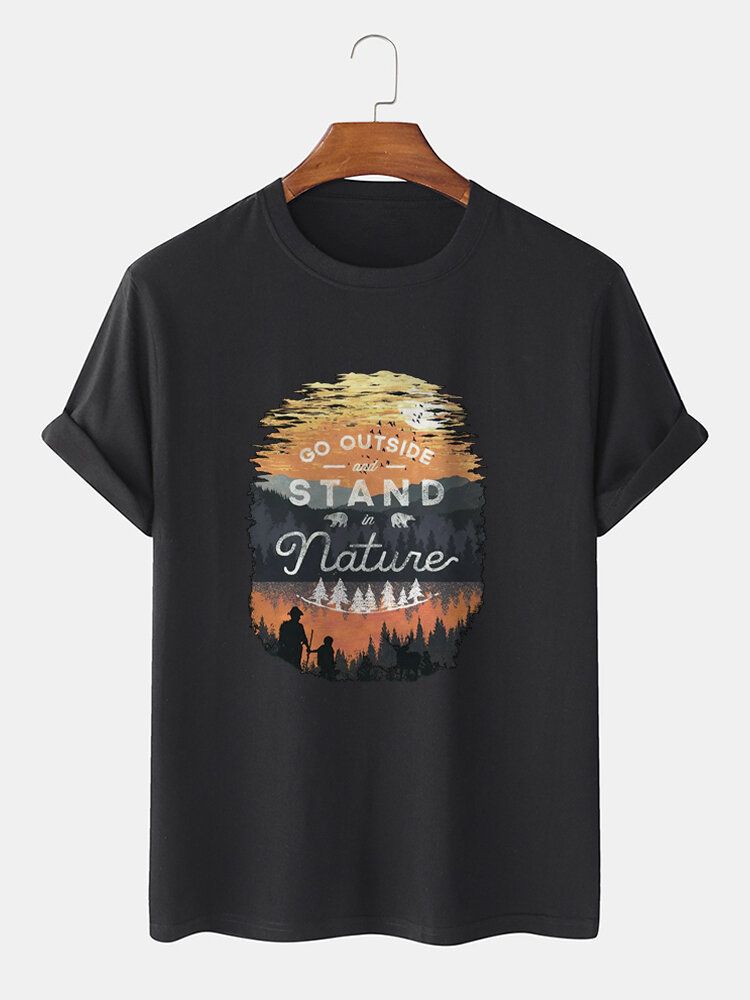 Mens 100% Cotton Slogant & Scenery Pattern Short Sleeve Casual T-Shirt