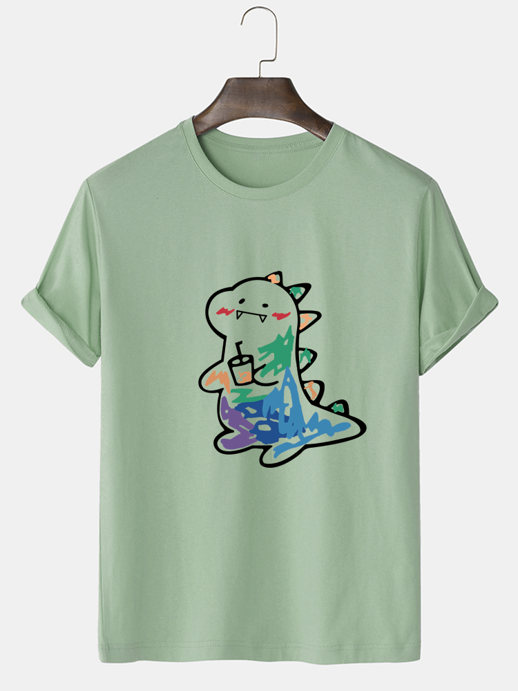 Mens Cartoon Animal Graphic Short Sleeve 100% Cotton T-Shirts
