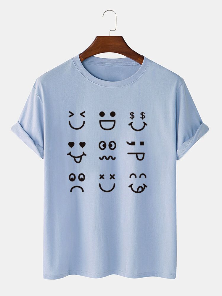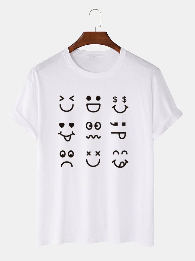 Mens Cartoon Expression Print Crew Neck Cotton Short Sleeve T-Shirts