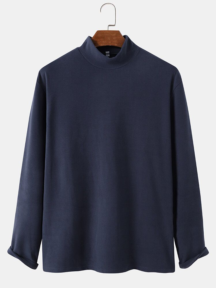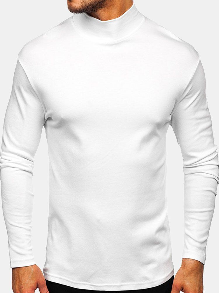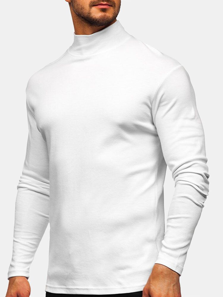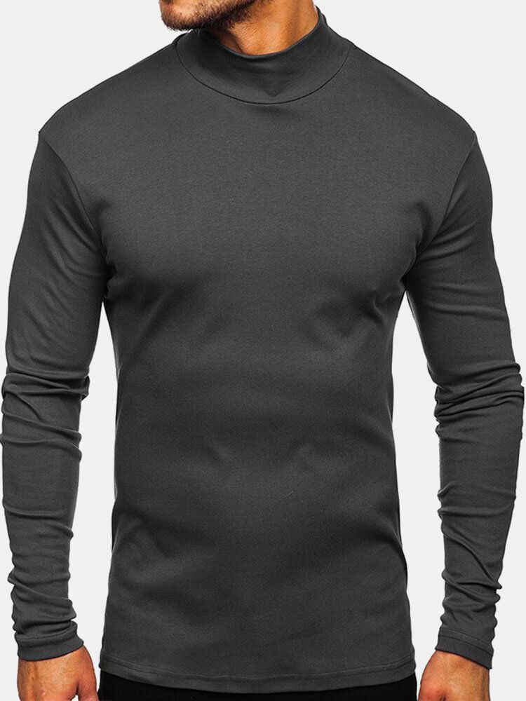 Mens Solid Color High Neck Plain Basics Long Sleeve T-Shirts