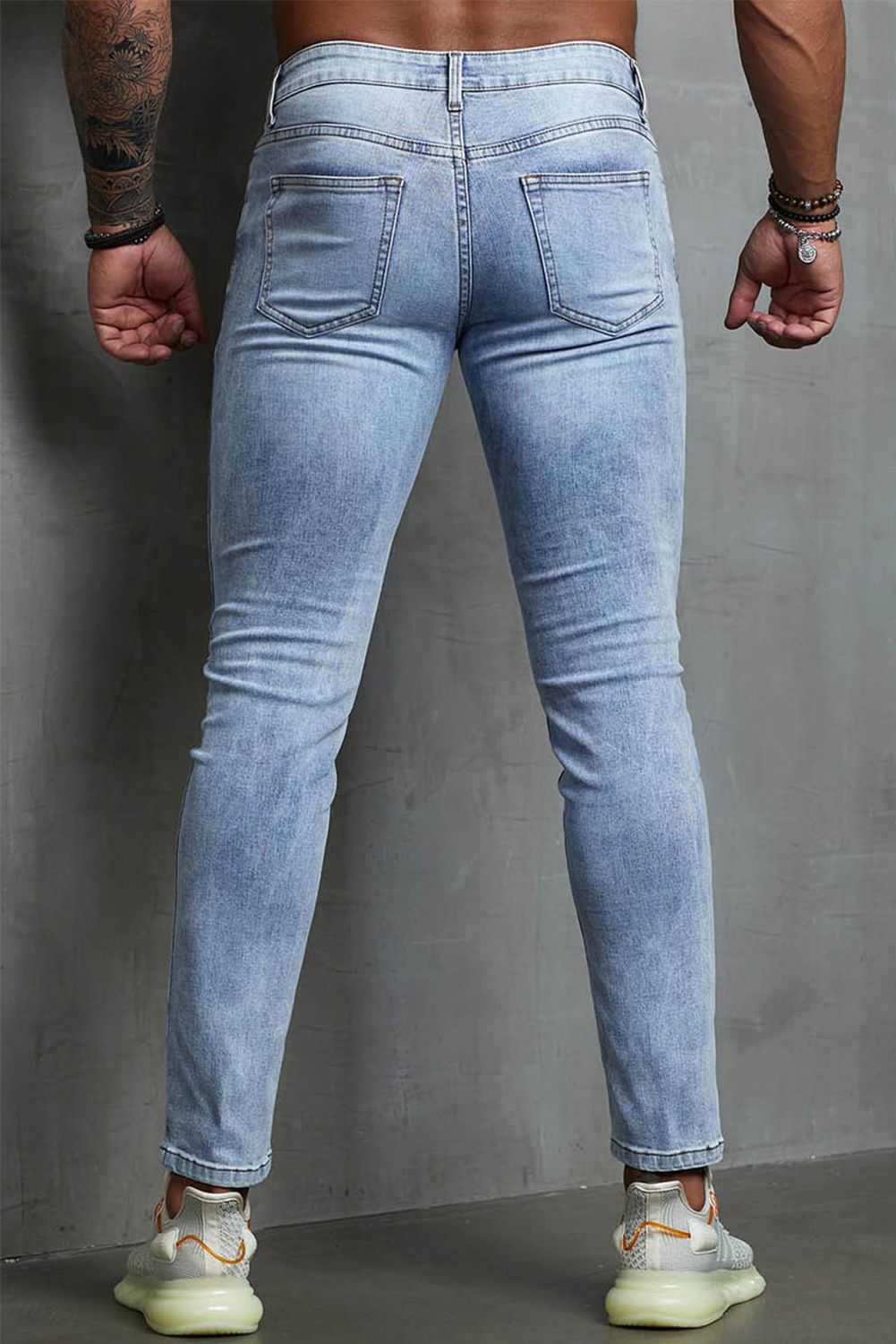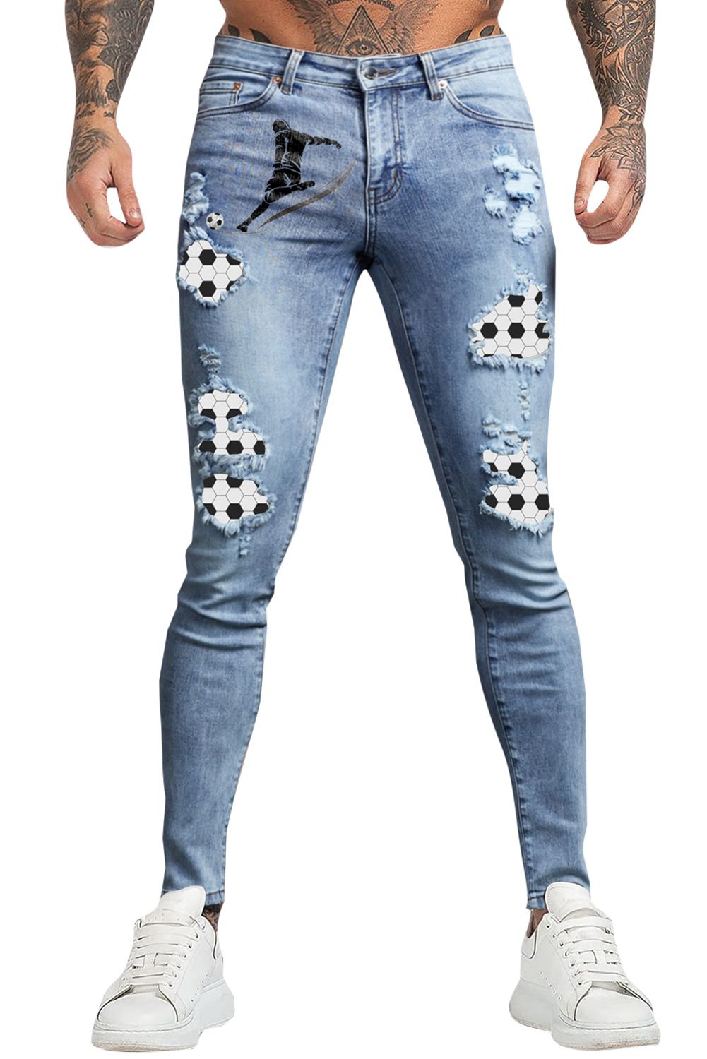 Sky Blue Soccer Print Splicing Skinny High Waist Men's Jeans