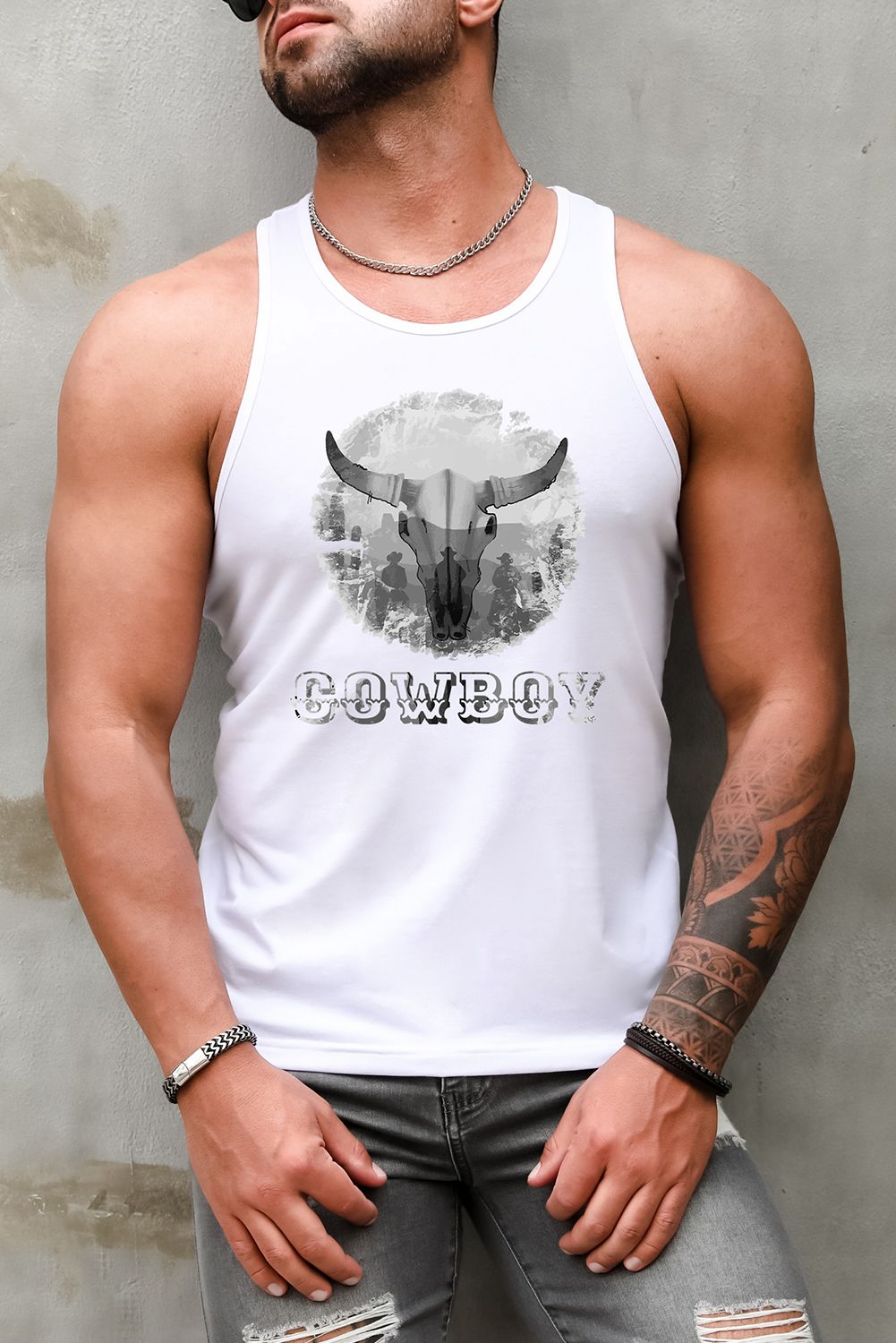 COWBOY Western Steer Head Print Men's Tank Top
