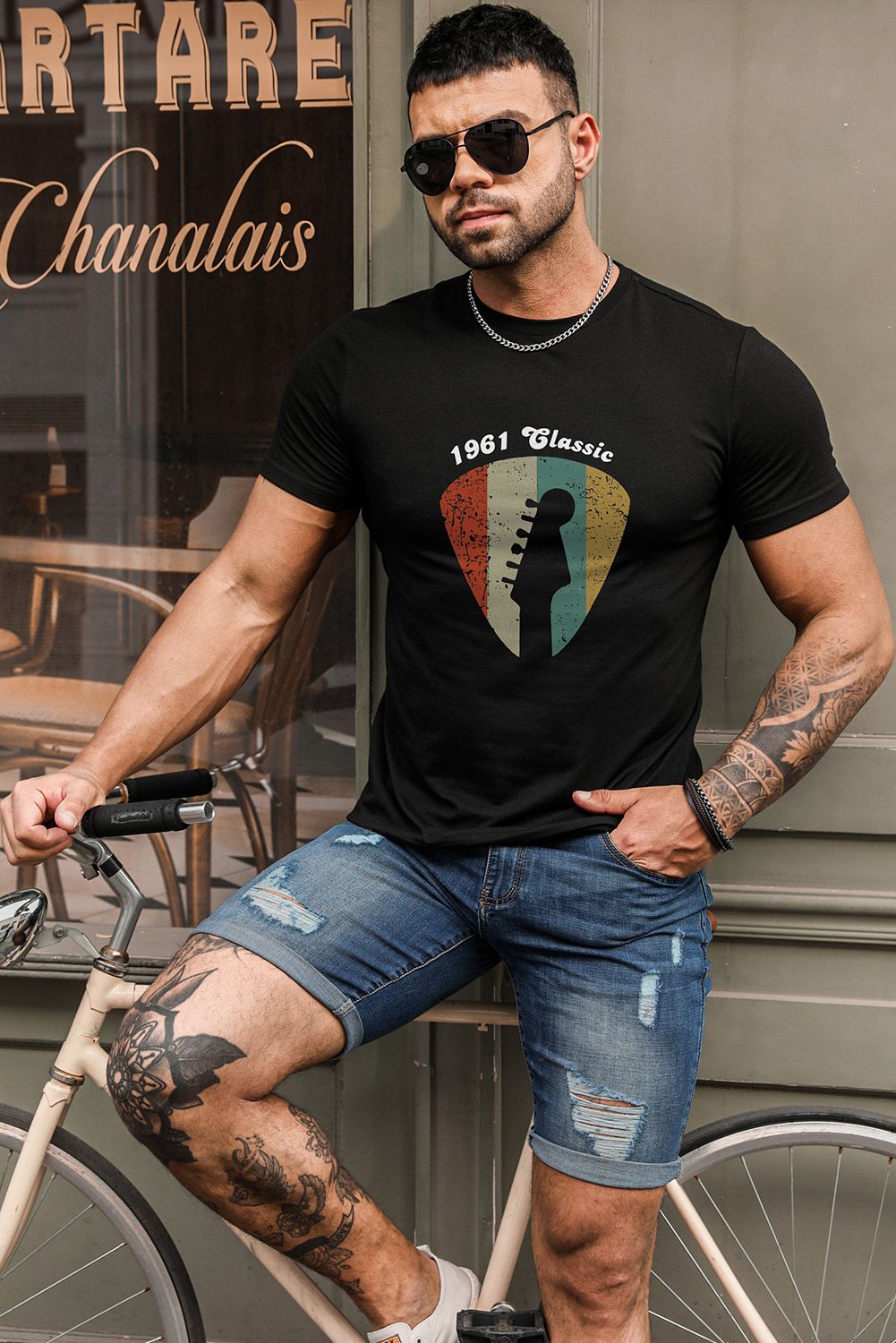 Black 1961 Classic Striped Guitar Color Block Men's Graphic Tee