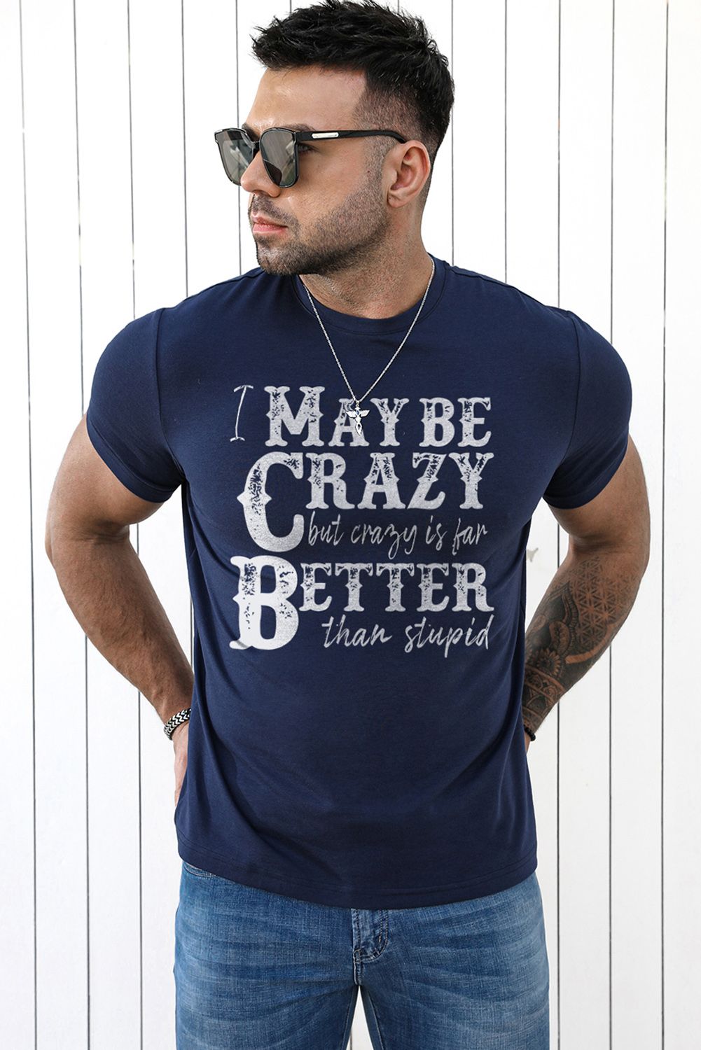 Blue Letters Pattern Print Muscle Fit Short Sleeve Men's T Shirt
