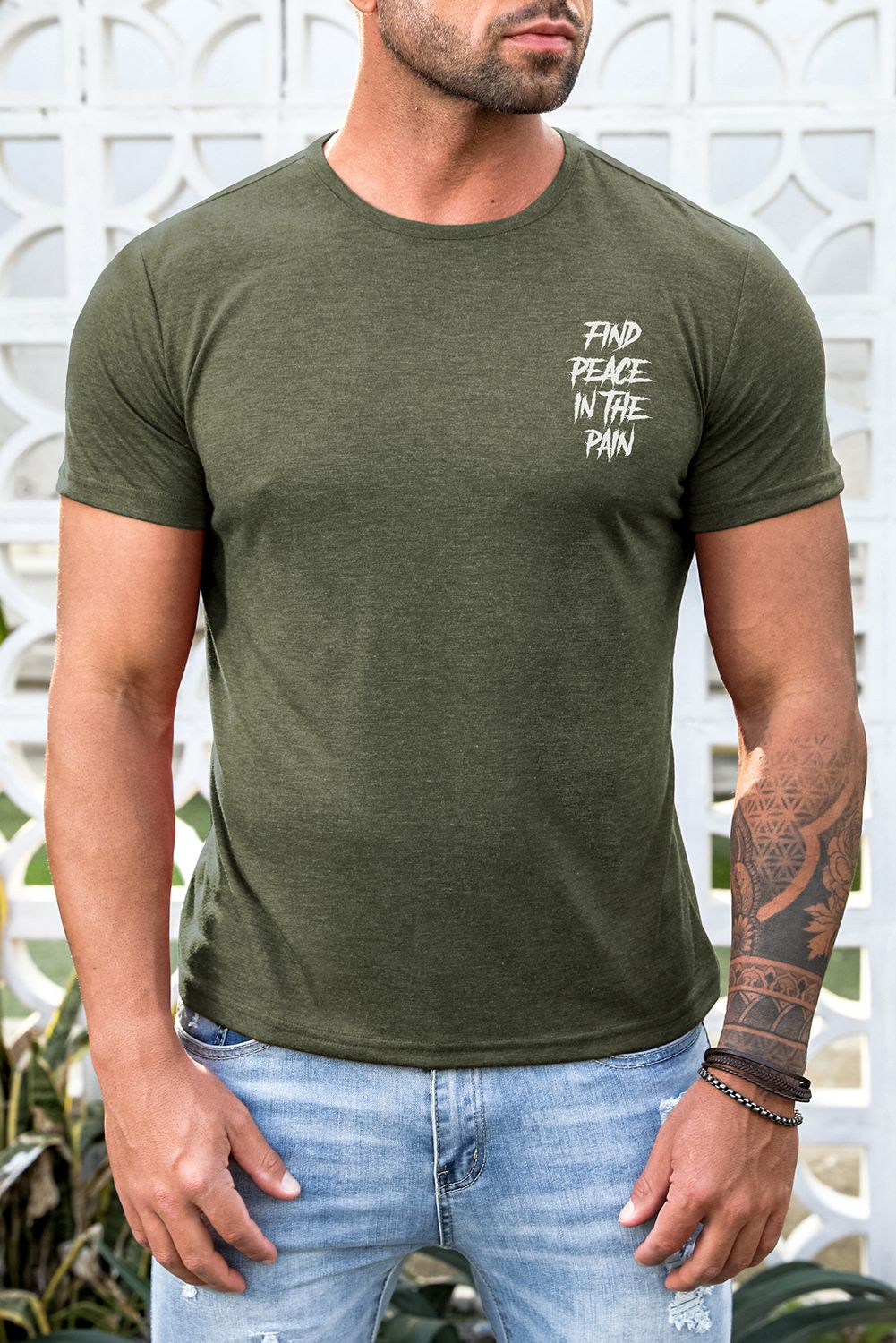 Green Find Peace In The Pain Slim-fit Men's T-shirt