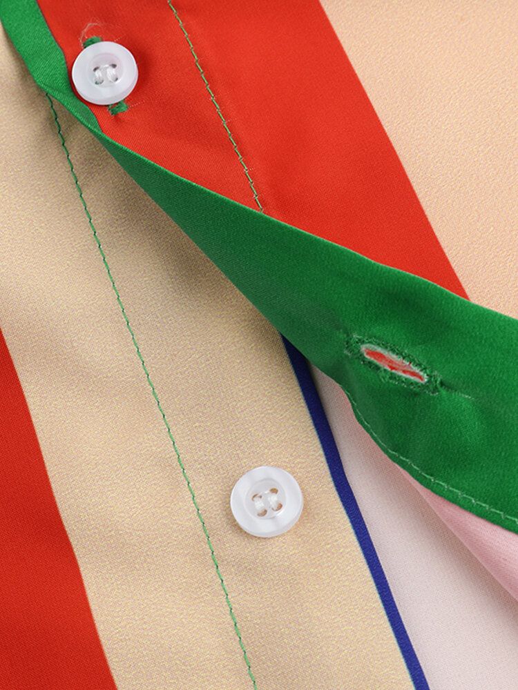 Mens Cool Rainbow Striped Patch Pocket Short Sleeve Shirts