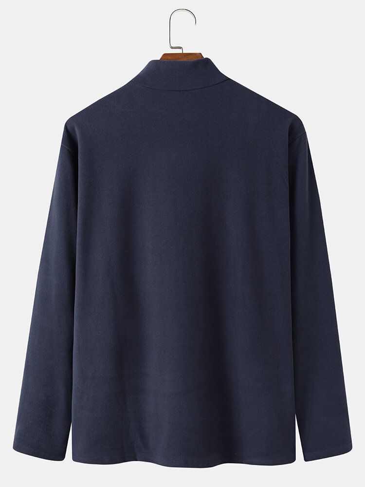 Mens Solid Color High Neck Plain Basics Long Sleeve T-Shirts