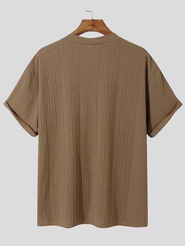 Mens Striped Texture V-Neck Short Sleeved Shirt