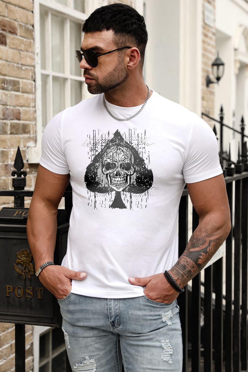 Skull Spade Print Short Sleeve Men's Graphic Tee